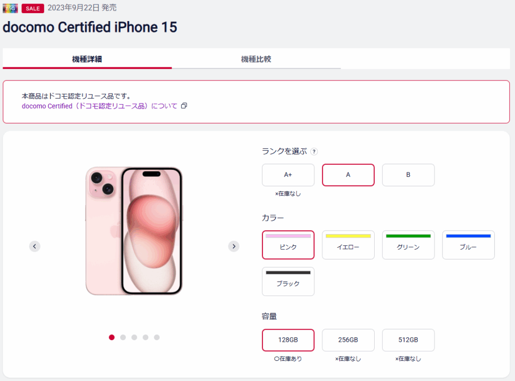 docomo Certified(ドコモ認定リユース品)は、iPhone15シリーズ以下で取り扱いがあります。